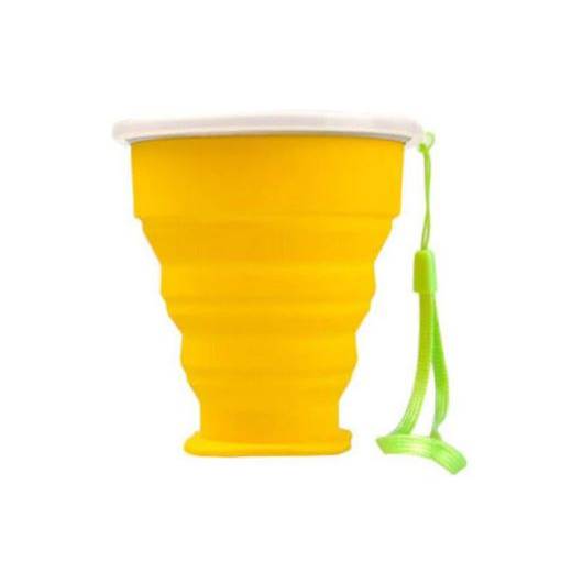 Skládací silikonový kelímek s víčkem. Praktický, lehký a odolný proti nárazu.
