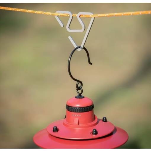 Díky trojúhelníkovému tvaru pevně drží na šňůře, větvi nebo tyči a snadno unese hrnek, lucernu či batoh.