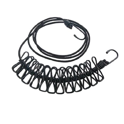 Praktická cestovní šňůra na prádlo s pevnými kovovými kolíčky je ideální pro sušení oblečení doma, na cestách i při kempování. Díky pružnému materiálu a háčkům na koncích ji snadno upevníte mezi stromy, na balkoně nebo v koupelně.